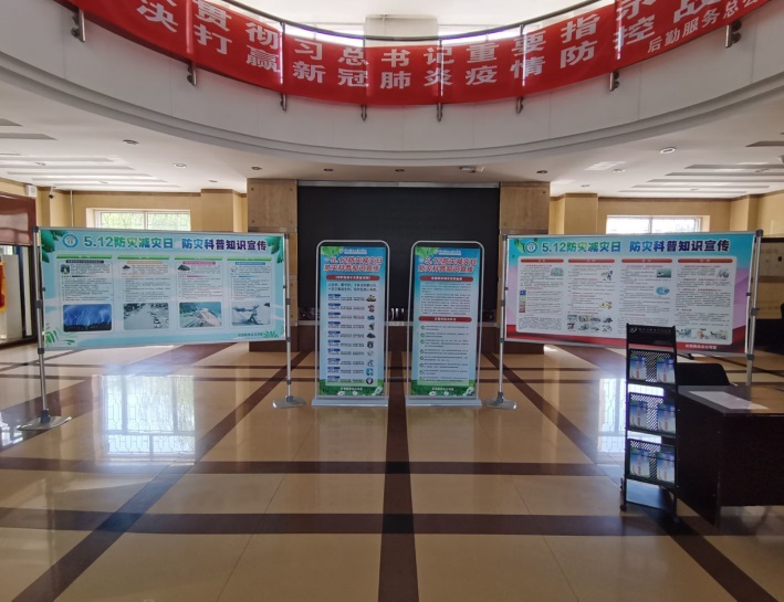 5月12日是我國第13個防災減災日,後勤服務總公司、國有資産管理處聯合黨支部制作3套防災減災日活動宣傳展闆擺放在辦公樓、一号、二号教學樓。